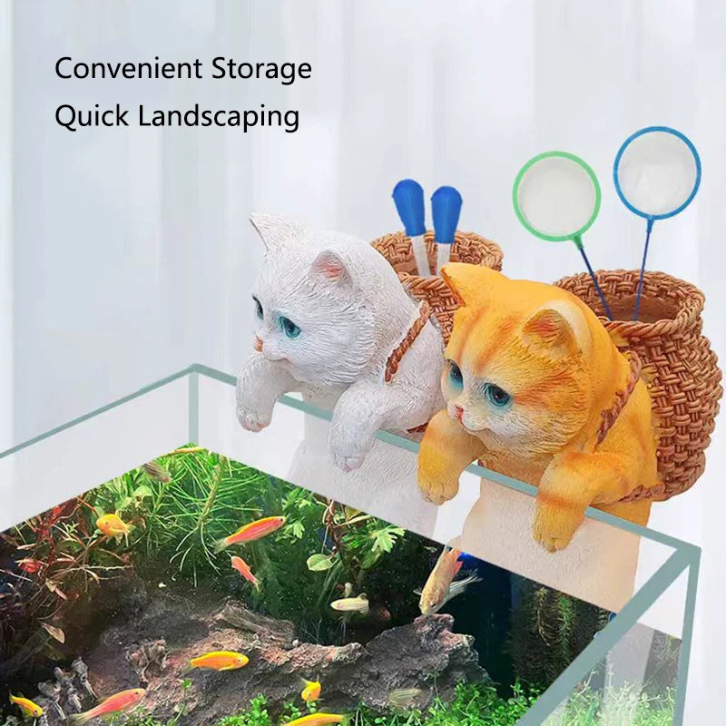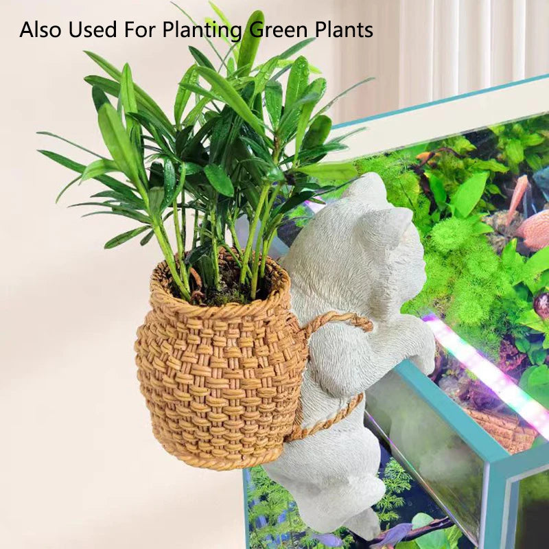 Aquarium Hanging Cat Backpack Hanging Ornaments Fish Tank Tool Storage Basket Desktop Flower Pot Landscaping Decoration Cute