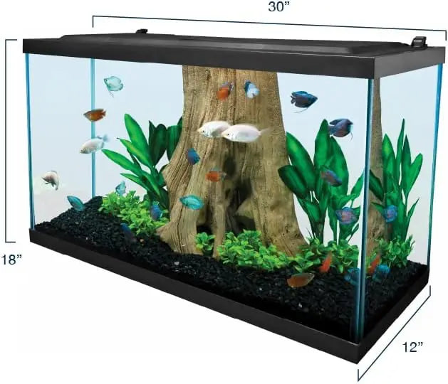 29 GALLON TANK: Measures 30 inches wide by 12 inches deep by 18 inches high