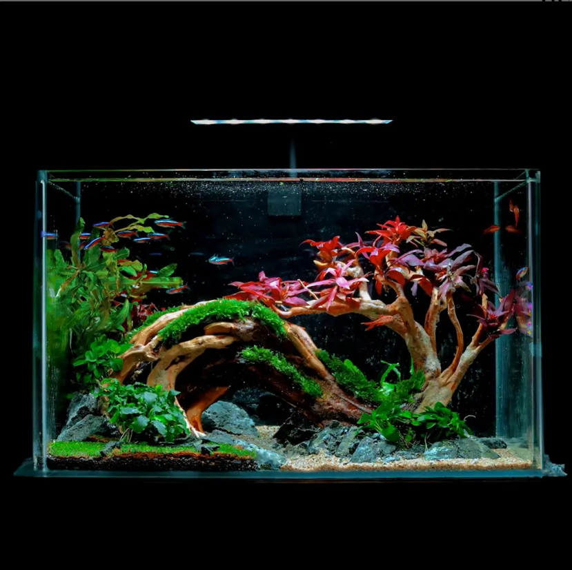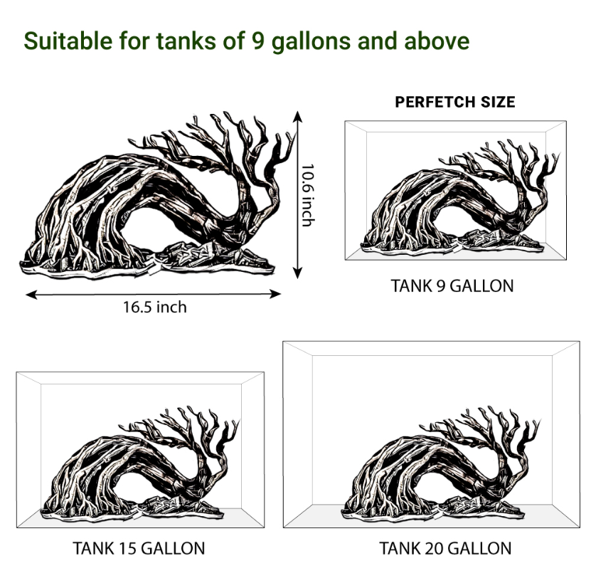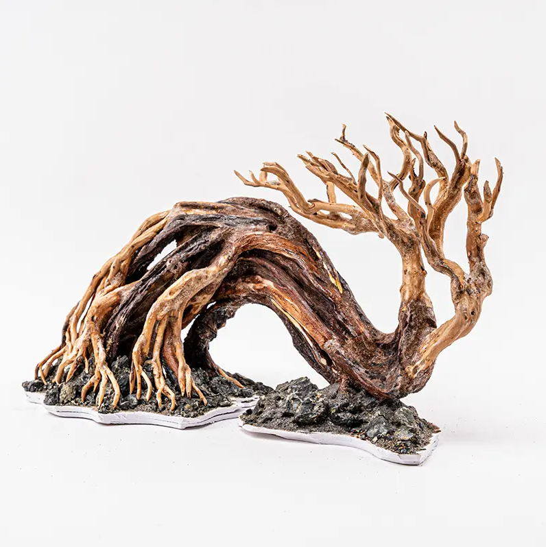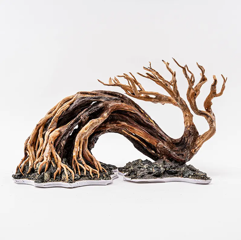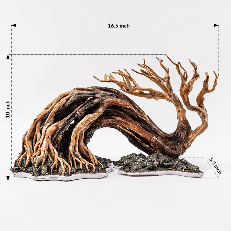 Embrace the power and mystery of the deep with the “Dragon’s Tail” premade hardscape. This captivating layout features a majestic piece of Manzanita driftwood, its powerful form evoking the tail of a slumbering dragon. Smooth Brook stones scattered at the base create a sense of depth and grandeur, perfect for aquascapers who love a touch of fantasy.